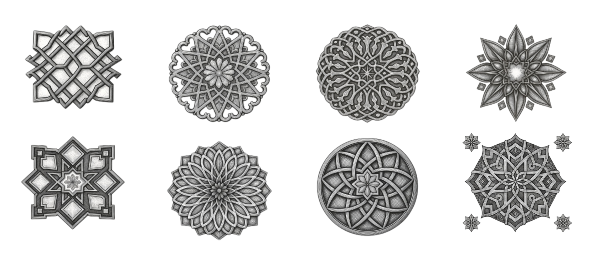 Cette architecture devient un langage. Les pièces, les couloirs, les seuils, les jardins deviennent, des lignes, des volumes, des découpes, des motifs inspirés de carrelages anciens, des systèmes de construction.